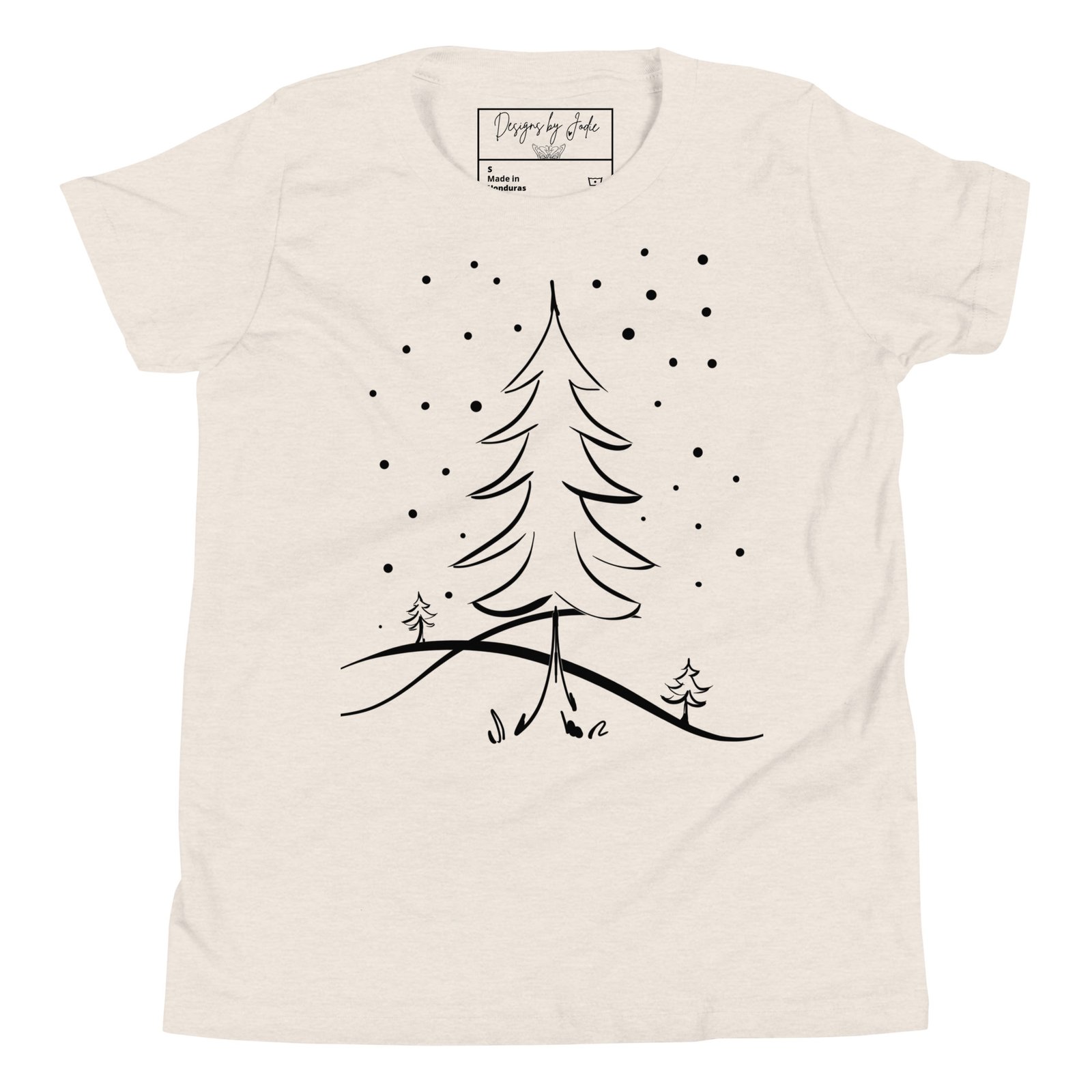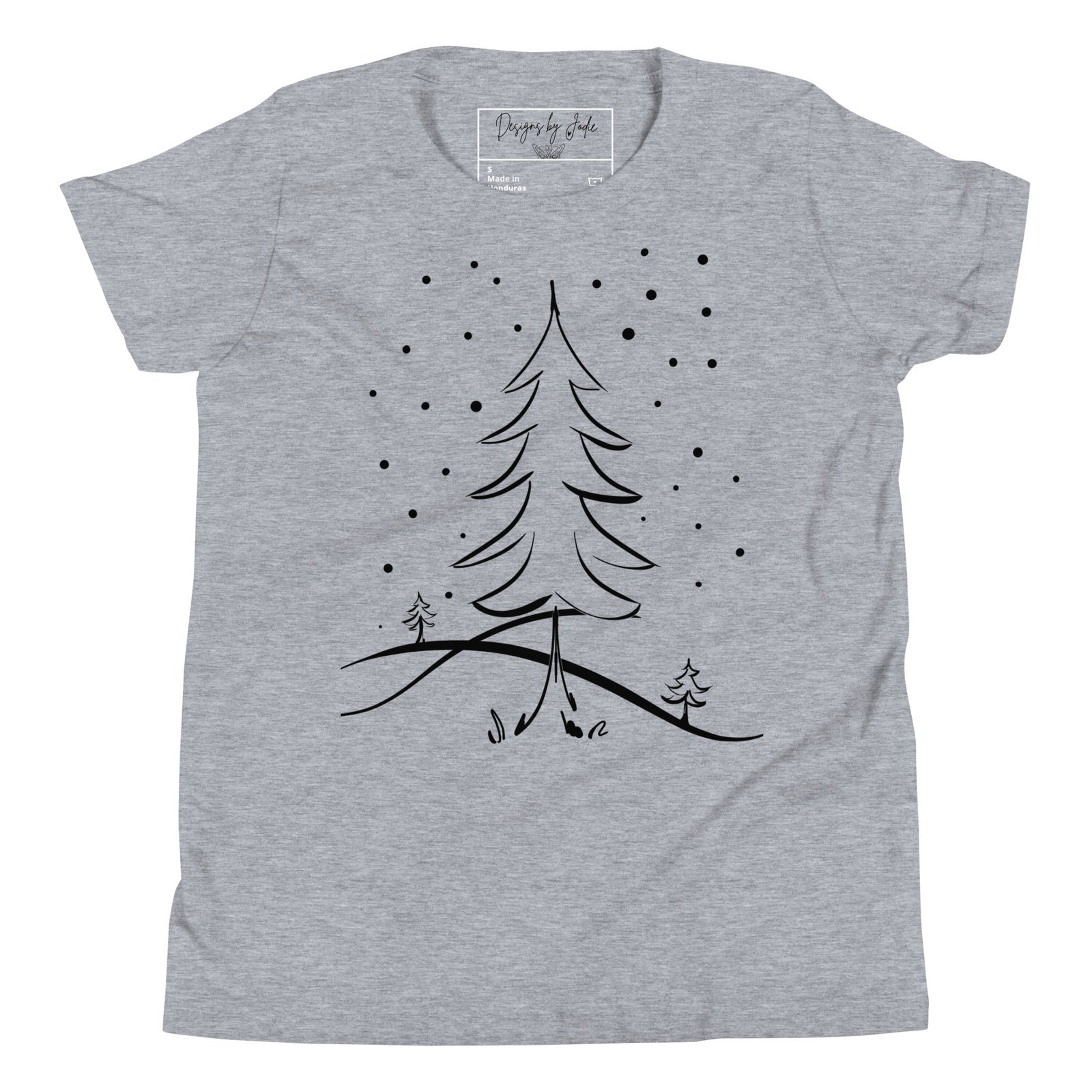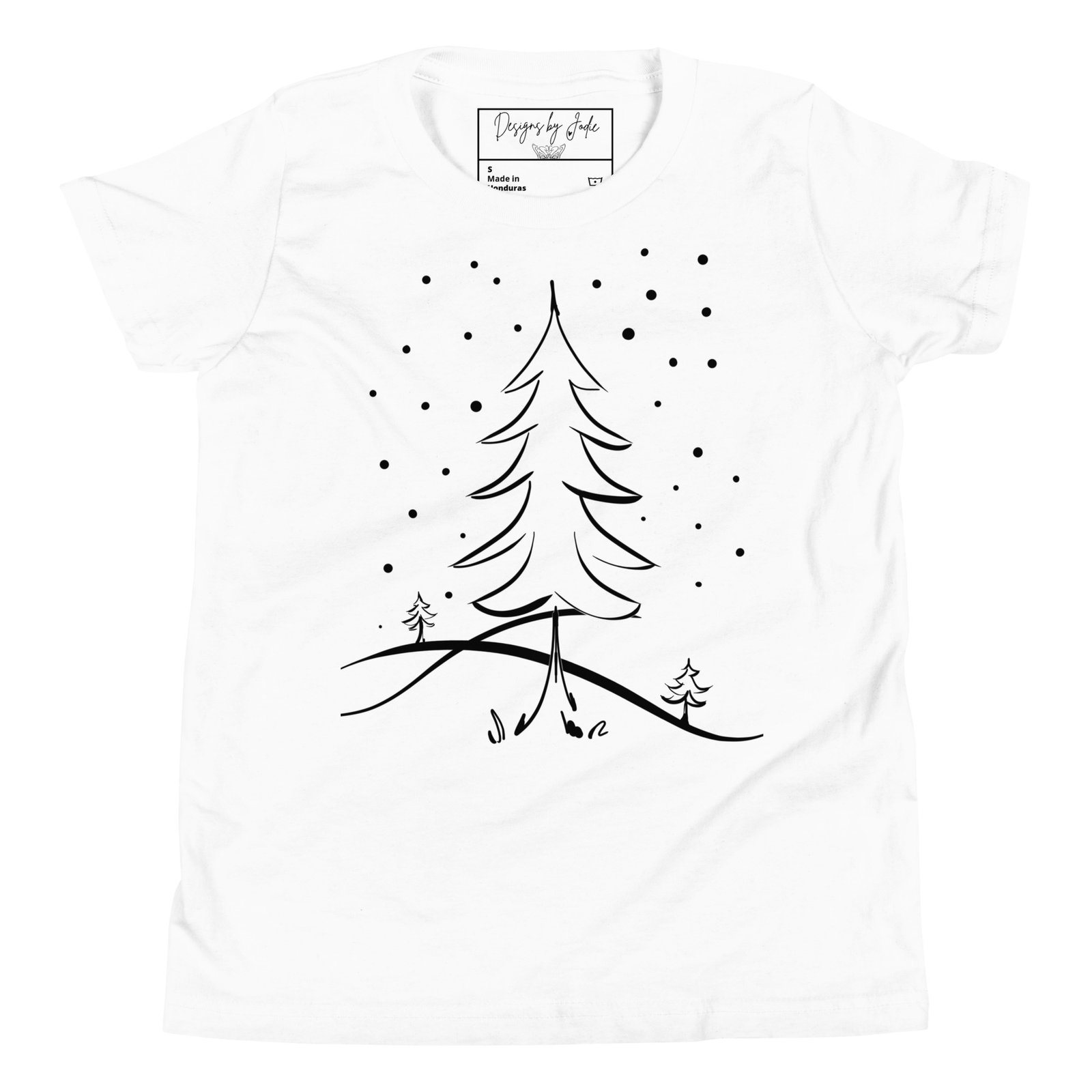 Add a touch of holiday elegance to your wardrobe with this beautifully designed Graphic tee, featuring an artistic old fashioned styled Christmas “Winter Wonderland” tree motif. With its choice colors and unique line work, and modern style, this graphic tee is a great choice for holiday gatherings, cozy nights, or festive outings. Everyone needs the perfect t-shirt to complement the Holiday laid-back look. The ideal top for so many occasions, this lightweight cotton tee will keep the kids comfy and looking festive the whole season! This is the tee that you’ve been looking for, and it’s bound to become a favorite in any youngster’s wardrobe.