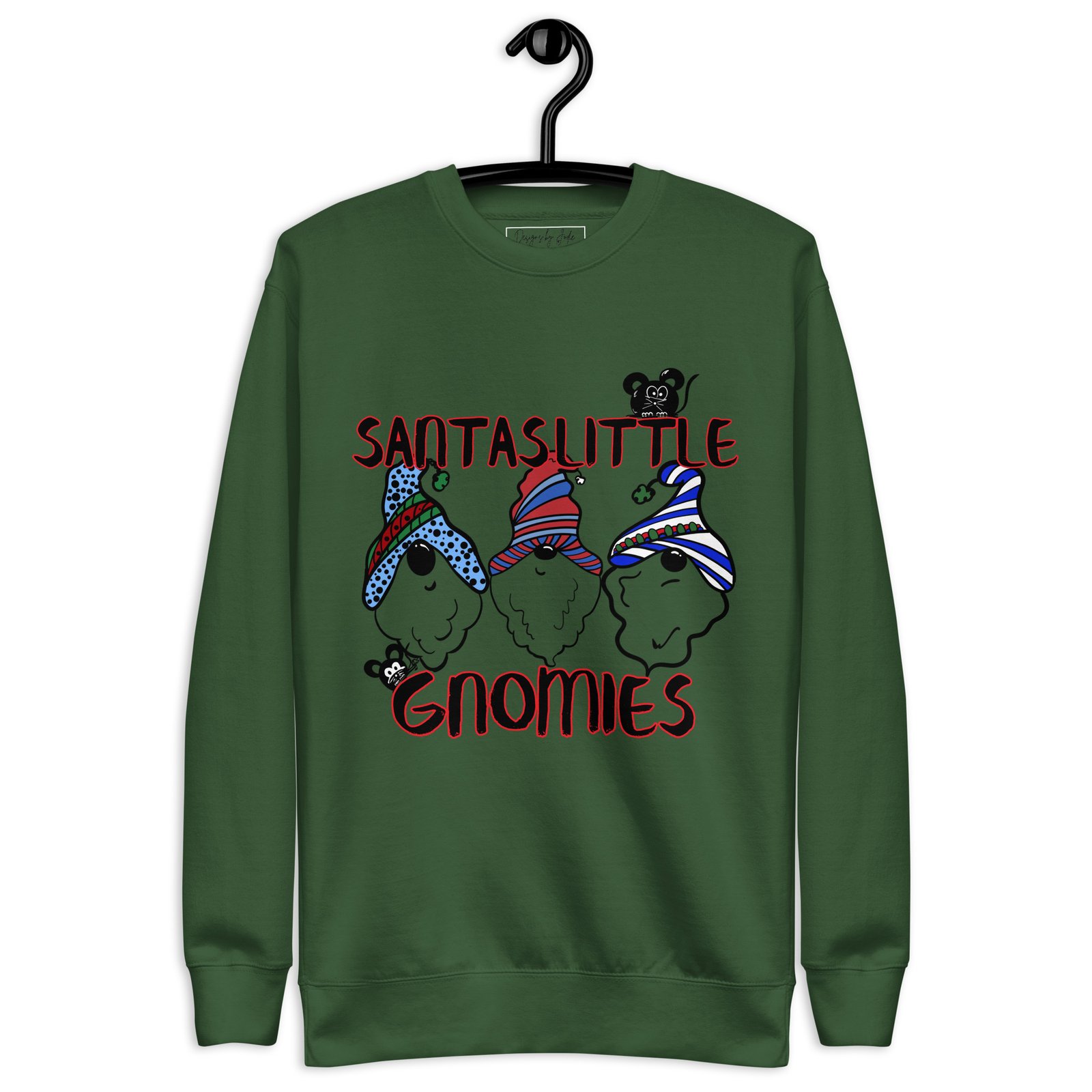 Get Cozy and spread holiday cheer with our “Santa’s Little Gnomies” sweatshirt! Featuring a charming design of festive gnomes and friends, this sweatshirt brings a playful twist to the holiday season. Rock a classic sweatshirt silhouette with ribbed crew neck, long sleeve cuffs, and a flat hem. Layer it up or wear it on its own. With the soft fleece inside and comfortable fit, it’s sure to become your favorite Holiday sweater right away!