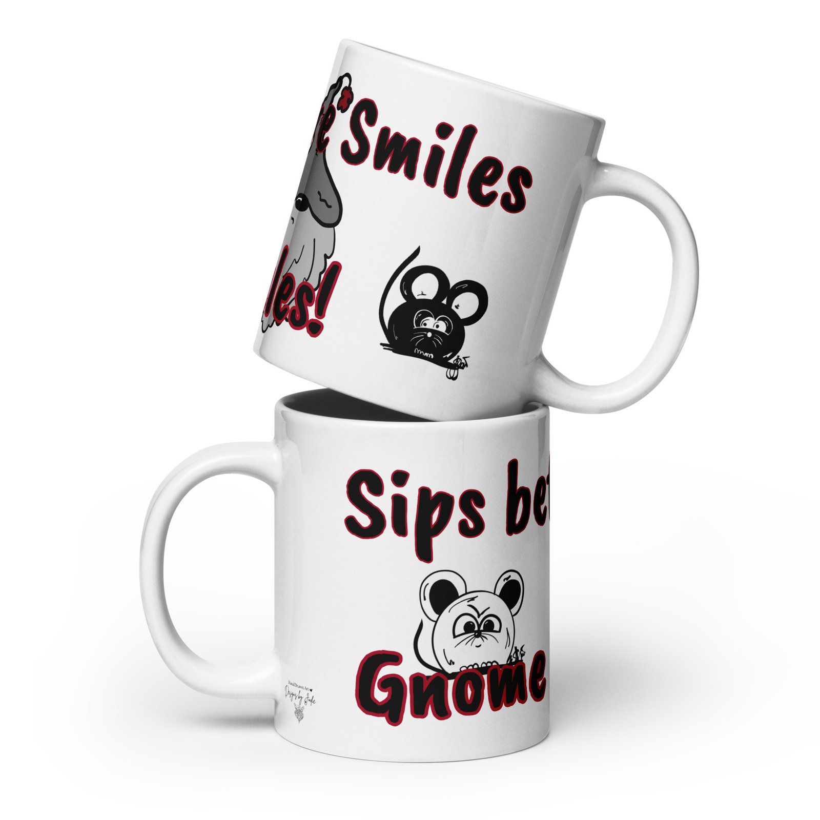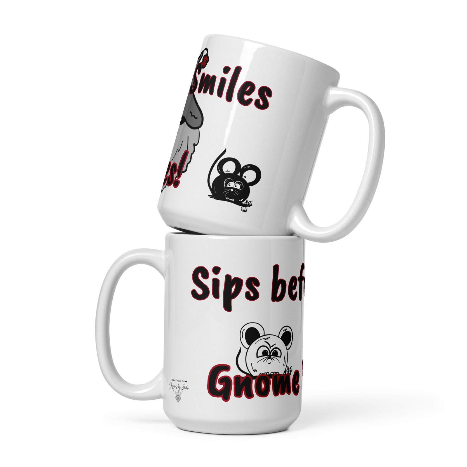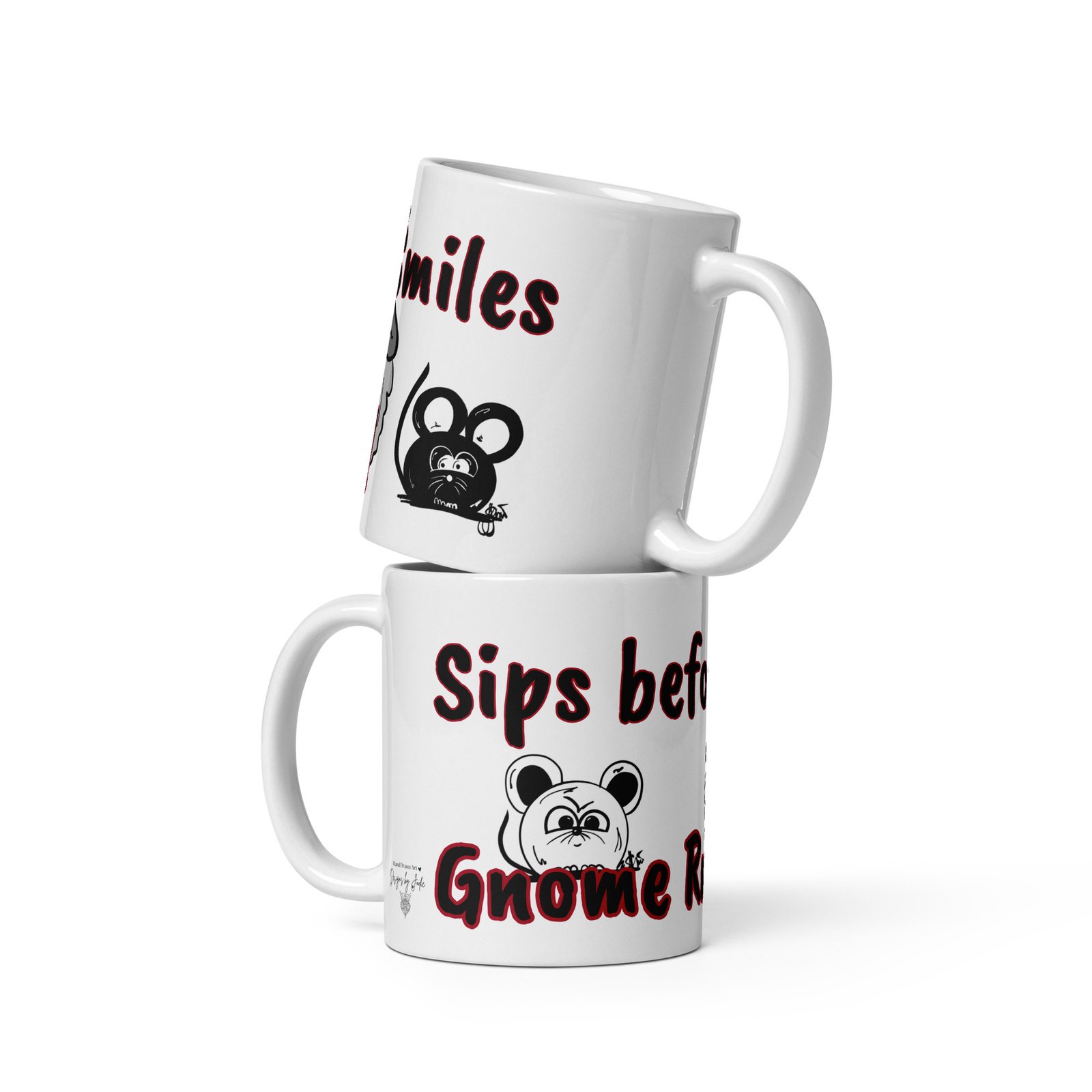 Add a dash of cuteness to your coffee routine with the “Sips before Smiles Gnome Rules!” mug. This delightful mug features a playful slogan, accompanied with a striking Gnome and a few little friends, making this mug great for keeping your coffee (or tea) warm while gently reminding those around you, sips before full functioning kicks in. It also makes the ideal gift for anyone who enjoys a little whimsical added to their daily grind. —this mug’s for you!