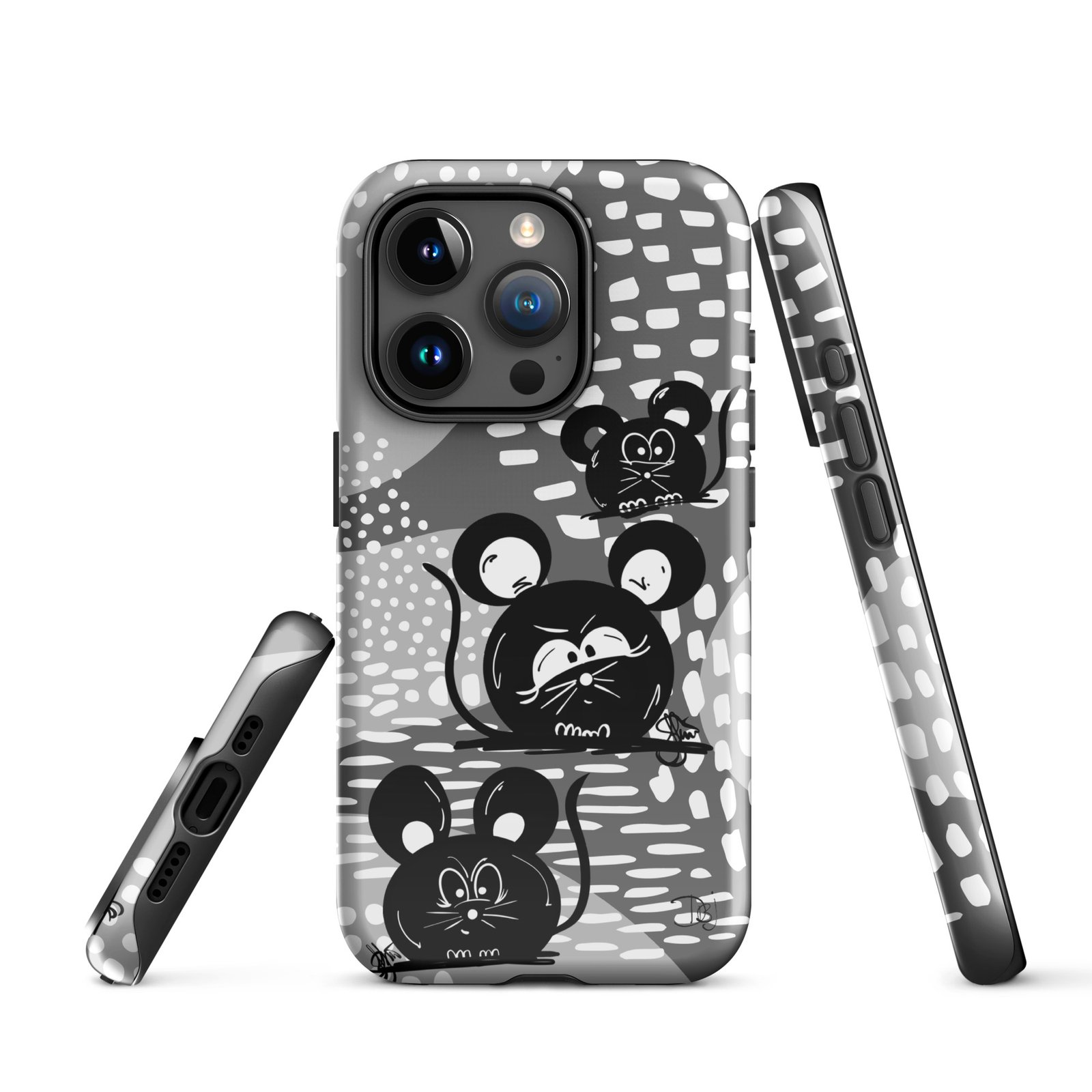 Bring a dash of whimsy to your day with this quirky cell phone case featuring funny little hand drawn mice over a dotted backdrop. They playful design is for anyone who loves unique and lighthearted art that stands out from the crowd to make you smile. Protect your phone with style using a durable, dual-layered case. The outer shell is made of impact-resistant polycarbonate, while the inner lining sports TPU lining for maximum impact absorption. Keep your phone fashionable and safe all year round!